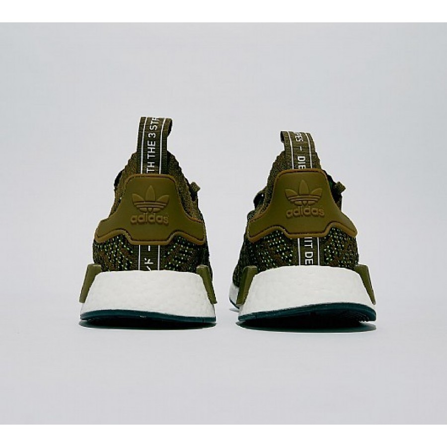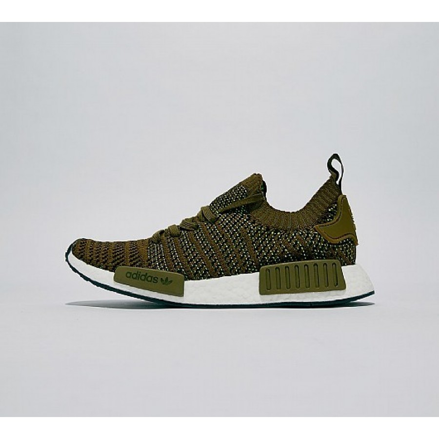 Billig Adidas NMD R1 Primeknit STLT Herren Olive Laufschuhe Auslauf